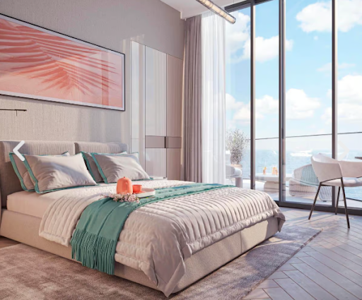 The building’s sleek lines, expansive floor-to-ceiling glass facades, and terraced structure create a harmonious blend of modern elegance and natural beauty. The interiors boast high-end finishes, including spacious living rooms, elegant bedrooms, and pristine bathrooms. Each residence is designed to provide a serene beachfront living experience, emphasizing sophistication and elegance. The Beach Vista’s 2-bedroom apartments are perfect for investors and young families alike, offering spacious, luxurious living. Each apartment features high-end finishes, stylish cabinetry, and modern fixtures. Expansive balconies provide breathtaking views of the Arabian Gulf and Wynn Al Marjan Island. With comfortable bedrooms and open-concept living areas, these apartments combine elegance with vibrant island life.